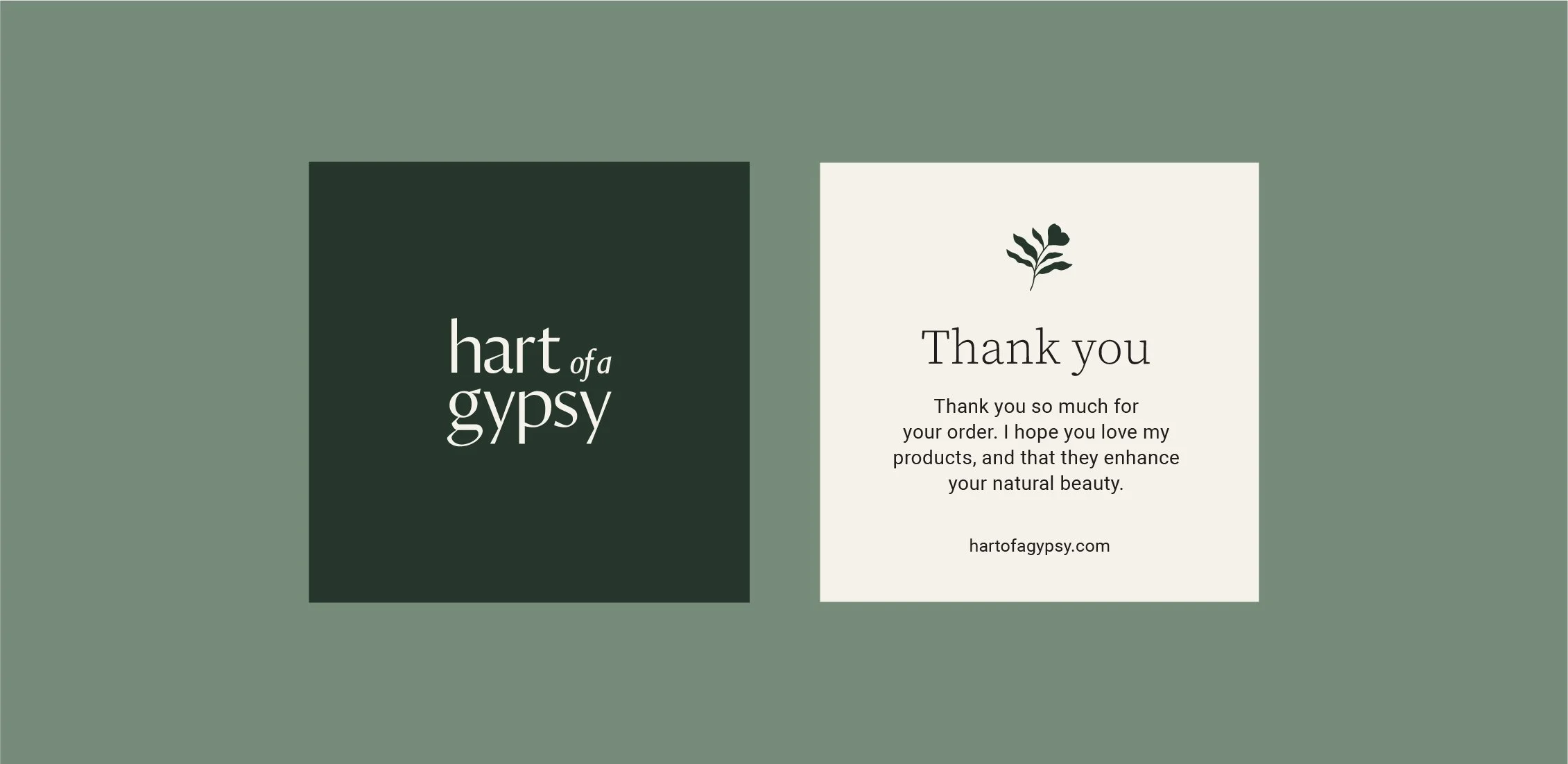 The most unique part of Hart of a Gypsy’s identity is the sun print art I created to use as textural backgrounds on the packaging and for social media posts. I sourced plants used in the skincare products themselves and created silhouetted prints of the botanicals using special print-making paper and sunlight. A truly one-of-a-kind brand asset that no one else will have.